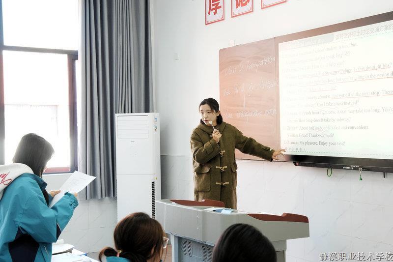 郭芹、徐均平老师在 2401 班、2402 班聚焦 “交通” 主题授课。郭芹老师以 “日常出行” 为情境,设计问路、购票等对话场景,学生角色扮演中规范运用英语表达;徐均平老师结合多媒体资源,播放交通相关英文动画,引导学生复述剧情、提炼核心词汇,学生主动参与语言输出,课堂氛围有序且热烈。